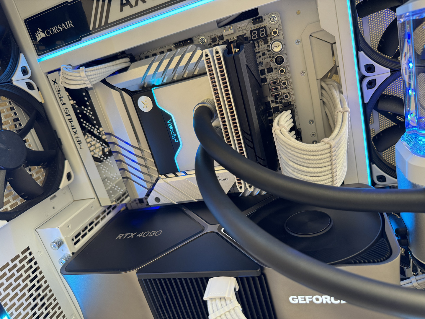 For the operating system, it uses a single Western Digital Black SN850 512GB NVMe SSD operating at 7GB/sec and dual Western Digital Black SN850X 4TB NVMe SSDs that operate at 7.3GB/sec, creating a total of 8TB of storage for games and creative work.
